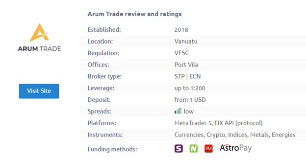 1. Arum Trade Is a Dubious Offshore Broker